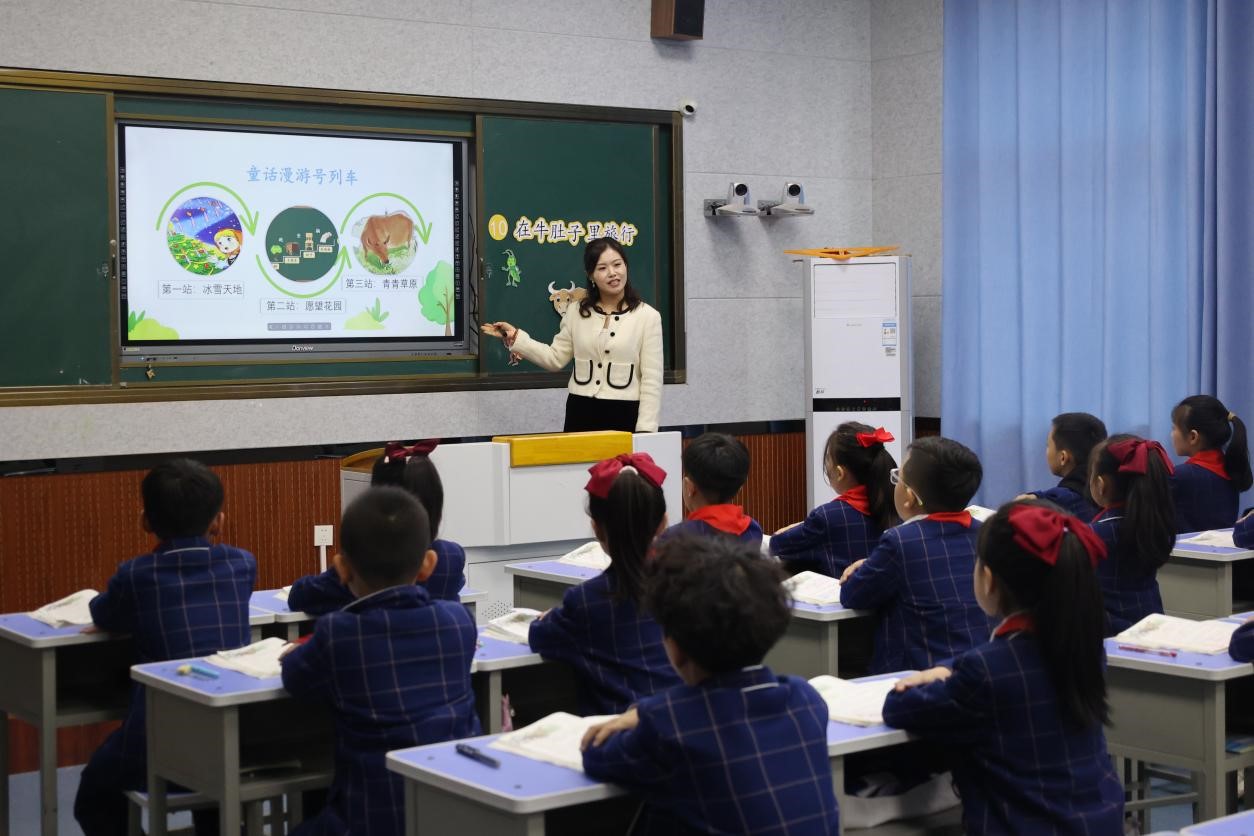 随后,各位老师进入班级观摩王纪华老师的语文课《在牛肚子里旅行》,切身感受羊山外国语小学的课堂氛围和授课模式。课堂上,学生们认真听课,积极回答问题,勇于发表见解,与老师形成了良好的互动,这种活跃的课堂氛围和积极的师生互动,赢得了培训学员们的一致好评和高度赞赏。