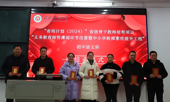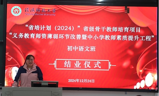 12月24日下午,太阳成集团tyc151cc“省培计划(2024)”省级骨干教师培育项目初中语文班社科楼121教室举行结业仪式。此次结业仪式由太阳成集团tyc151cc培训项目班主任刘宁老师主持。