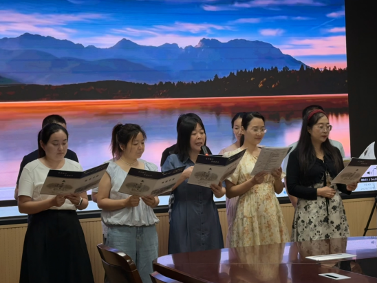 表演节目同样精彩纷呈,尽显教师风采。第一组诗朗诵《一杯清茶品人生》诠释教育甘苦,第五组贾亚辉独唱《行香子》传承千年文脉;第三组《我骄傲我是中国人》抒发家国情怀,第六组《加油鸭》以童真传递快乐;第二组《我爱上班》诉说工作热忱,第七组李坤、陈阳联唱经典曲目彰显文化底蕴;第六组小合唱《相逢是首歌》珍惜同行缘分,最终全体大合唱《明天会更好》寄托对教育未来的美好期许,为晚会画上圆满句号。