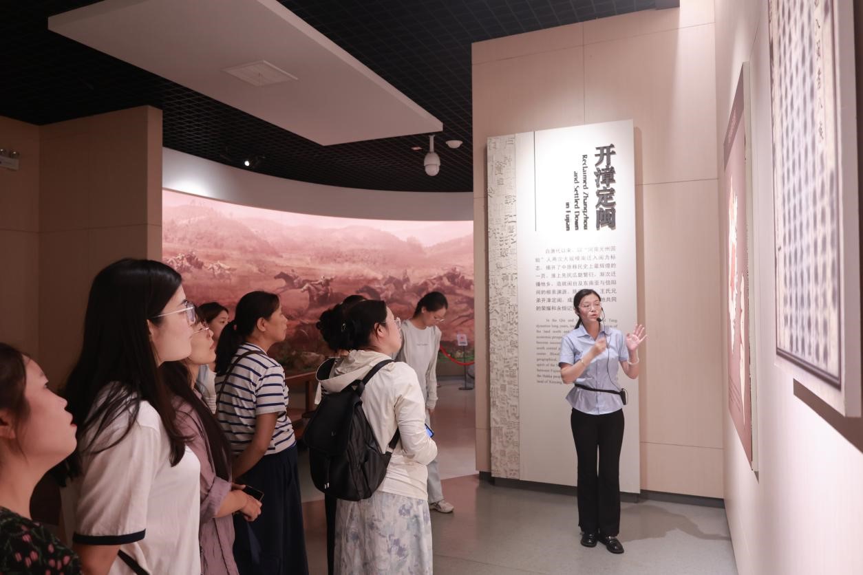 8月24日上午,2025年“义务教育师资薄弱环节改善暨中小学教师素质提升工程”万名优秀中青年教师培育计划项目的学员在班主任萧晟洁的组织带领下,前往信阳市博物馆参观学习。