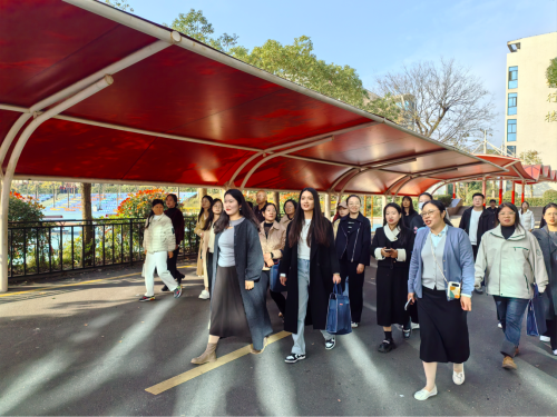 上午,学员们走进羊山中学。在陈晓晖副校长的引导下,大家依次参观了心理室、图书馆、科技馆和体育馆,深入了解学校在文化育人、心理健康、科技创新等方面的系统化实践。陈校长重点介绍了学校如何通过课程整合与活动设计,全面促进学生综合素养的提升。学员们边听边思,不时驻足交流,从校园文化氛围中汲取育人智慧。