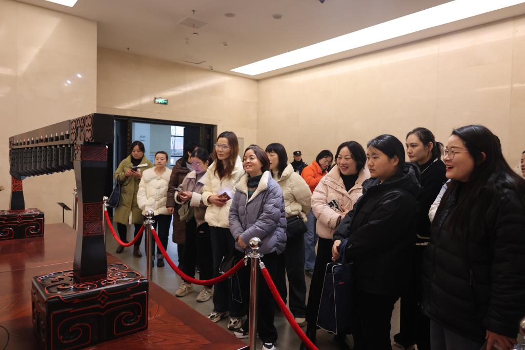 最后,研修班成员前往信阳市博物馆进行进一步的考察和学习。学员们在讲解员的带领下分别参观了远古家园、淮上诸侯、楚地王风、天下根亲、茶韵天香、豫风楚韵六个板块,每个板块都以其独特的视角和丰富的展品,向学员们展示了信阳历史文化的不同横截面,共同构成了一幅完整的历史画卷。它不仅让学员们感受到了信阳深厚的历史底蕴,也展现了中原文化与楚文化的交融与传承,让学员们直观地了解和学习历史文化知识,增强文化自信。