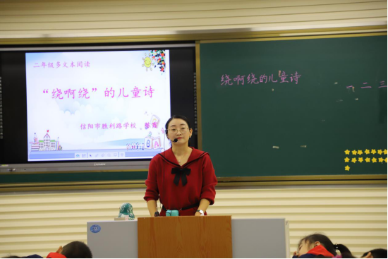 接着由胜利路学校的优秀教师陈霞带领学生为研修班学员们展示了一节精彩的示范课《“绕啊绕”的儿童诗》。陈老师紧扣朗读,综合运用了自由读、男女读、配乐读、“开火车”读、小组赛读和全班齐读等朗读方式,极大地调动了同学们的积极性。活跃的课堂氛围,积极的师生互动,获得了老师们的一致好评。