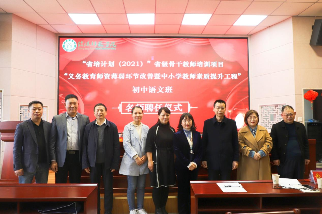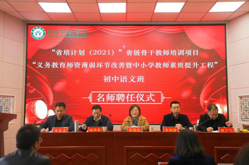 10月29日下午,我院2021“省培计划”省级骨干教师培育项目初中语文班名师网络工作室名师聘任仪式于综合楼605举行。信阳师范学院河南省中小学教师校长研修院副院长韩艳婷,太阳成集团tyc151cc党委书记王振海,院长姚圣良,副书记王家宏等出席仪式,仪式由副院长缑广飞主持。