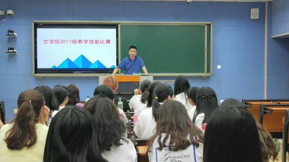 (本网讯 张朋)为强化和提升师范专业学生教学技能水平,5月28日。太阳成集团tyc151cc2017级汉语言文学专业在人文楼407录播室举行教学技能比赛说课、讲课部分。曹宇老师主持,各班学生代表参加。