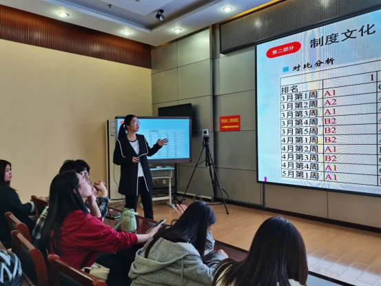 随堂听课之后,师生随即开展了座谈,姜文娱老师从课堂模式、教材取舍、分层教学、分层作业几个方面向同学们展示了羊山中学的教学模式,最后提出把握命运,要从自身变革开始,让自己的课堂成为更为高效的课堂。曹君老师则从物质文化、制度文化、精神文化三个方面讲述了羊山中学的校园文化,系统、详细地为同学们介绍了羊山中学的办学特色,并强调羊山中学坚持以“路虽远,行则必至;事虽难,做则必成”的态度培育每一位学生。