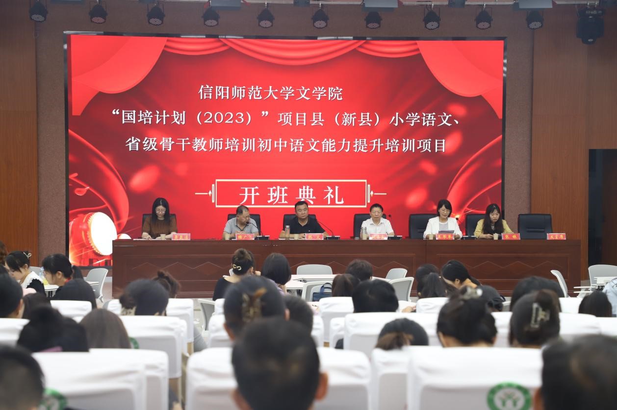 2023年9月14日上午,“国培计划(2023)”项目县(新县)小学语文、省级骨干教师初中语文能力提升培训项目开班典礼于suncitygroup太阳成集团人文楼报告厅成功举办。新县教师教育发展中心后勤部主任韩文、太阳成集团tyc151cc院长姚圣良、副院长缑广飞、副教授王萃萃、研修班班主任萧晟洁、张姝以及全体学员出席开班典礼。开班典礼由缑广飞主持。