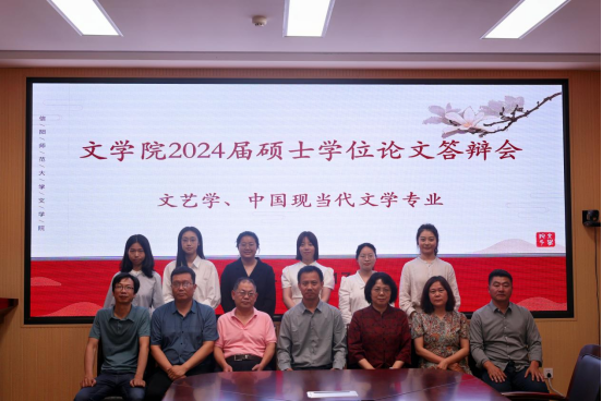 5月17日,文艺学、中国现当代文学专业2024届硕士研究生学位论文答辩会顺利举行。郑州大学李勇教授应邀出席,并作为答辩主席主持了此次学位论文答辩会,答辩委员由我院沈文慧教授、缑广飞教授、方志红教授、徐洪军副教授、王丹副教授担任,尹威博士担任答辩秘书。文艺学、现当代文学非毕业年级研究生旁听了本次答辩会。