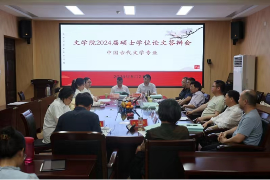 5月21日,中国古代文学专业2024届硕士研究生学位论文答辩会顺利举行。上海大学教授、博士生导师曹辛华教授应邀出席,并作为答辩主席主持了此次学位论文答辩。答辩委员由安徽省社科院黄胜江教授、黄山书社编审周振华教授、黄淮学院刘小兵教授、我院姚圣良教授、江中云教授、张本一教授担任,朱国伟副教授担任答辩秘书。古代文学专业非毕业年级研究生旁听了本次答辩会。