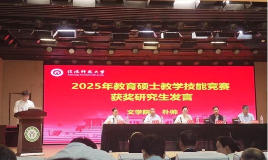为深化研究生培养机制改革,提升教育硕士专业学位研究生实践教学能力,提高培养质量,展示培养成果,我校研究生院于5月17日举办2025年教育硕士研究生教学技能大赛决赛。我院2024级学科教学(语文)专业朴帅、方静、马韶宇同学在本次大赛中喜获佳绩,分获一二三等奖,一等奖获奖选手朴帅同学在颁奖典礼上代表获奖选手发言。