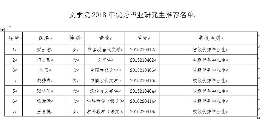 根据学校《关于评选2018年优秀应届毕业研究生的通知》文件精神,我院积极组织,客观公正地开展评选工作,现将拟推荐名单公示如下:
