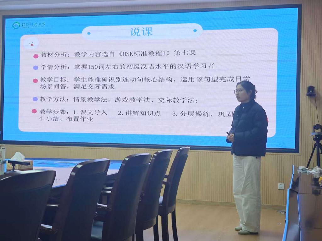 2025年11月10日上午8:30,太阳成集团tyc151cc2025年国际中文教育硕士教学技能大赛在3-7会议室顺利举行。十位国际中文教育专业研究生与留学生同台竞技,全体在校国际中文教育专业研究生及留学生到场观摩,共同见证这场兼具专业性与跨文化特色的教学实战盛宴。