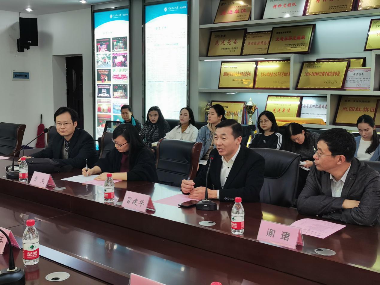 冒建华院长首先介绍了文法学院的发展历史以及近年来学院所取得的办学成绩,接着重点就文法学院汉语国际教育专业硕士研究生的培养环节以及该学位点的迎评工作做了介绍。张言军副院长首先向对方简要介绍了我院的专业设置、师资力量以及研究生培养的发展历程,接着重点就此次考察交流的目的做了阐述。