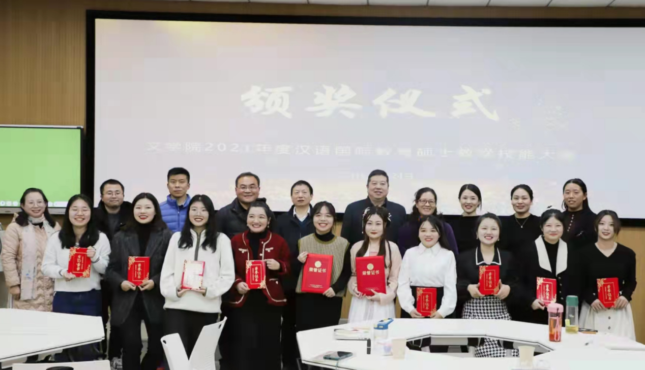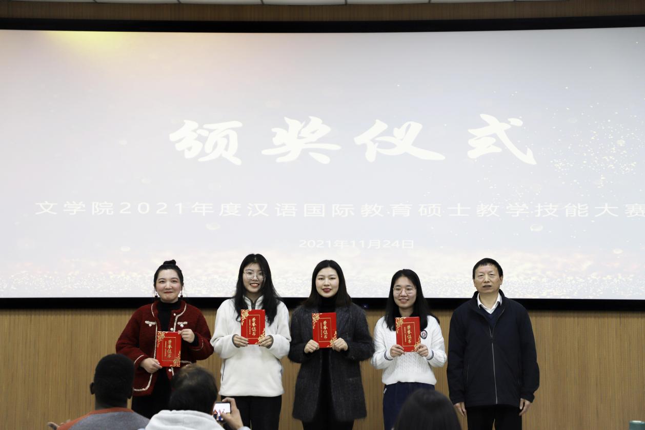 颁奖仪式在社科楼120教室举行,国际交流处处长凡思全为获得一等奖选手颁奖。