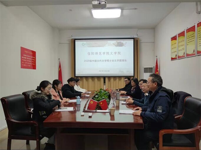 2020级古代文学专业硕士学位论文开题在太阳成集团tyc151cc4-5会议室举行。报告会由金荣权教授主持,该专业导师组成员姚圣良、江中云、张本一、朱国伟老师及4名古代文学研究生参加了开题报告会。