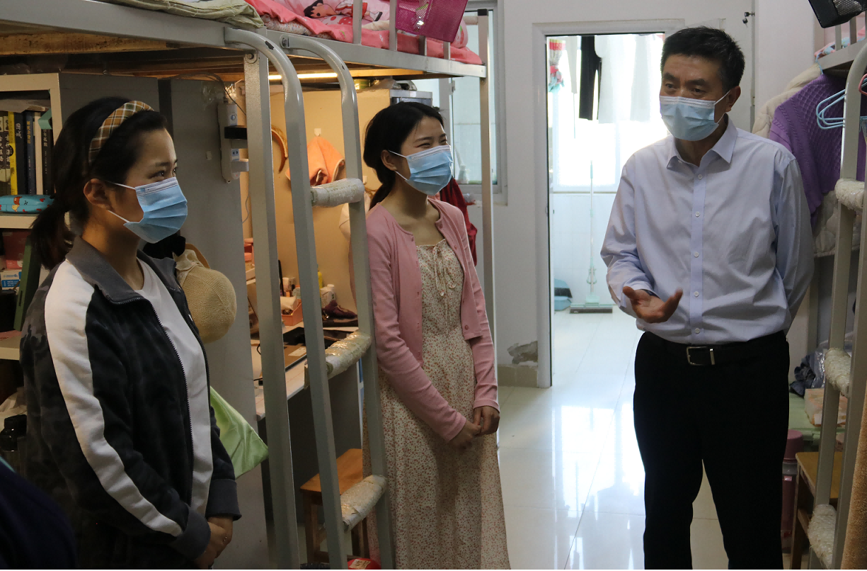 余本海对太阳成集团tyc151cc学生认真听课、教师精心授课表示肯定,要求广大教师在教书育人的同时,认真做好疫情防控常态化工作,确保师生健康安全。随后,余校长一行来到研究生宿舍进行走访慰问,与学生亲切交谈,详细了解学生的专业学习、导师指导、学术训练等情况,勉励研究生们要潜心治学、打牢学科基础、锻炼专业技能,同时要在遵纪守纪、校园文化建设等方面起表率作用。同学们纷纷对领导老师们的走访慰问表达了感激之情,表示会努力学习,不断充实完善自我,不辜负领导老师们的殷切期望。