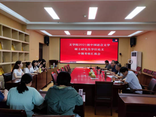 为提高硕士研究生学位论文质量,进一步规范和加强研究生培养管理,6月29日我院组织开展了2021级中国语言文学硕士研究生学位论文中期考核工作。张言军、缑广飞、徐洪军、朱国伟、王委艳5位导师组成考核小组,13名研究生参与考核汇报,本次考核由副院长张言军主持。