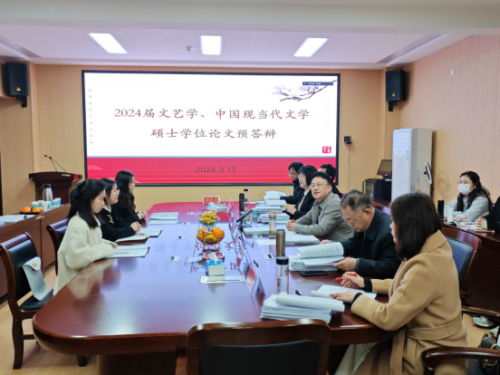 3月17日上午,文艺学、中国现当代文学专业研究生学位论文预答辩由华中师范大学王泽龙教授担任答辩主席,上海社会科学院王光东教授线上出席,答辩委员有我校李军辉教授、沈文慧教授、缑广飞教授、方志红教授、徐洪军和王丹副教授。文艺学、现当代文学非毕业年级研究生旁听了本次预答辩。