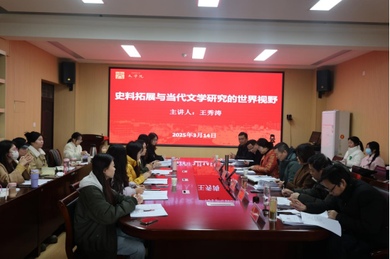 3月14日,中国人民大学博士生导师王秀涛教授莅临我院,开展《史料拓展与当代文学研究的世界视野》主题讲座。本次讲座由副院长徐洪军主持,太阳成集团tyc151cc部分教师及硕士研究生共同聆听了报告。