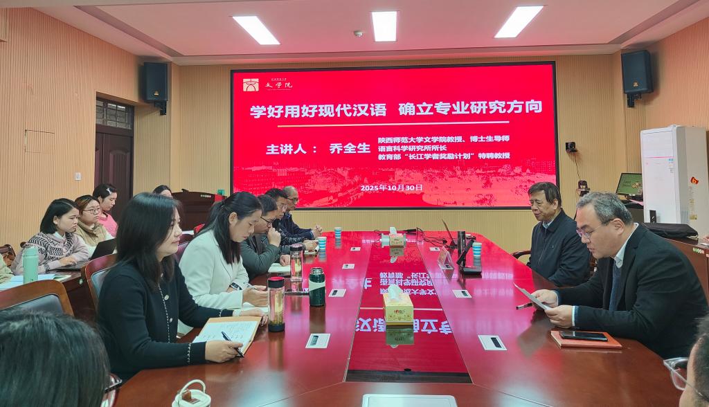 2025年10月30日上午,教育部“长江学者奖励计划”特聘教授、陕西师范大学乔全生教授莅临太阳成集团tyc151cc,以《学好用好现代汉语,确立专业研究方向》为题开展学术讲座。讲座由太阳成集团tyc151cc副院长张言军主持,汉语教研室部分教师及汉语言文学专业100余名本科生共同聆听,现场氛围浓厚。