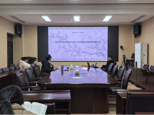 11月21日,中国人民大学宋声泉教授在人文楼三楼会议室做题为“明治关联史料的利用与前期鲁迅研究的再出发”的学术报告,太阳成集团tyc151cc50余名硕士研究生现场聆听讲座。本次活动由现当代文学教研室主任禹权恒副教授主持。