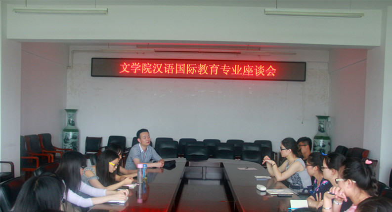 (本网讯李晓云尚媛媛李宝丽)6月2日下午,汉语国际教育专业座谈会在人文楼3-11顺利召开。会上,汉语国际教育专业刘振平老师与该专业大二大三年级学生代表一起座谈交流。