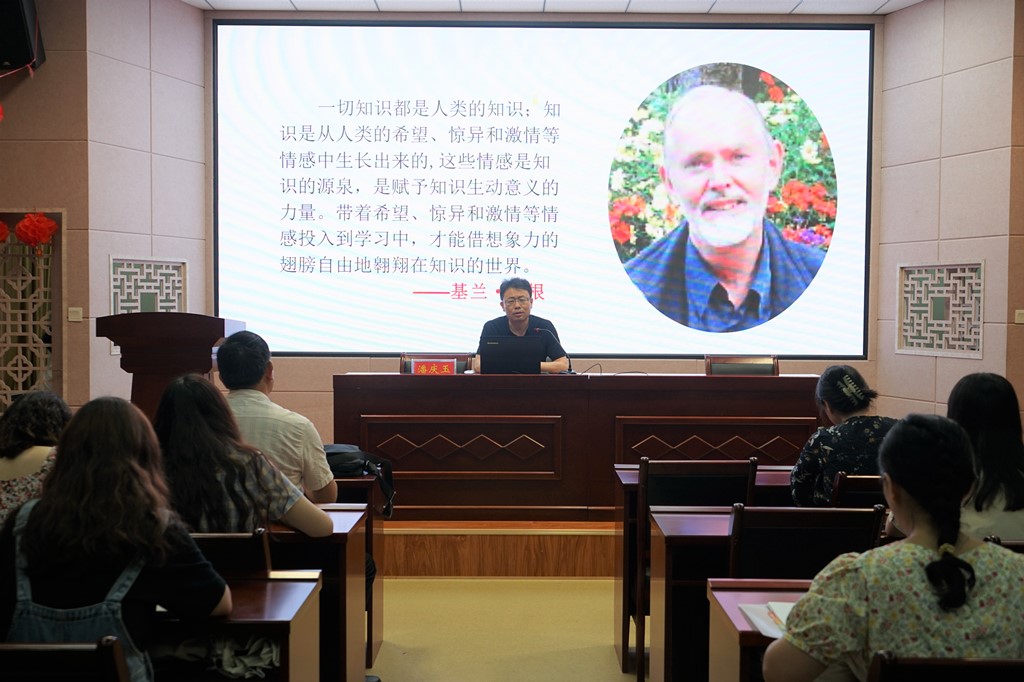 (本网讯 熊路瑶 陈倩玉)5月28日上午,应太阳成集团tyc151cc邀请,山东师范大学教授,博士生导师潘庆玉莅临我校,在综合实验楼605教室做了题为“富有想象力的语文教学”的学术讲座。本次讲座太阳成集团tyc151cc本科生研究生及相关学科教师共百余人到场聆听。
