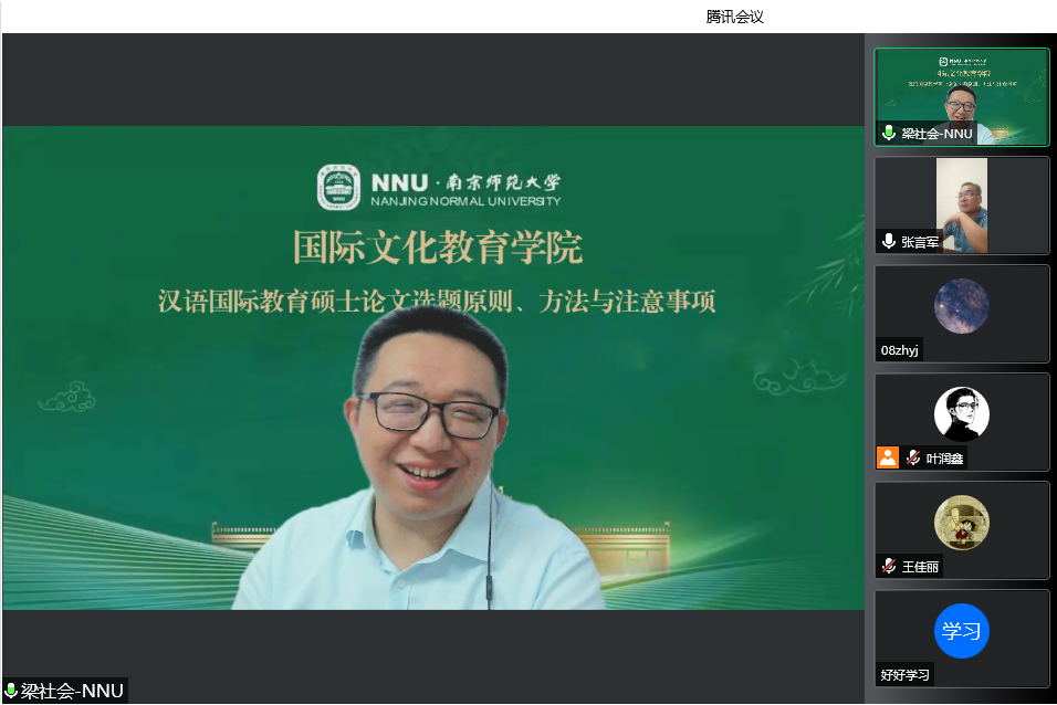 6月10日,应太阳成集团tyc151cc和汉语国际教育研究所邀请,南京师范大学梁社会教授为我院师生做了题为“汉语国际教育硕士论文选题原则、方法和注意事项”的专题讲座。讲座由太阳成集团tyc151cc副院长张言军主持。太阳成集团tyc151cc2021级、2022级全体汉语国际教育硕士研究生及研究生导师共同聆听了此次讲座。