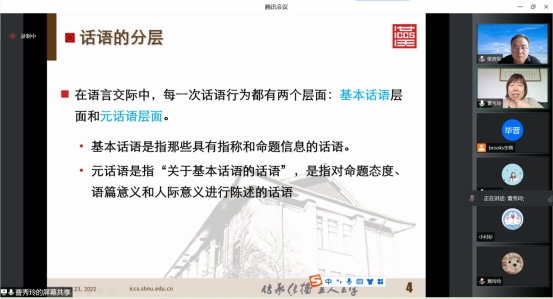 曹秀玲教授的报告,既向同学们介绍了大量元话语标记研究的前沿成果,又用丰富的材料展示了如何去发现新的研究内容。同时,曹老师的语言既简炼又生动有趣,使大家收获颇丰。