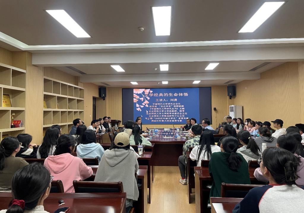 讲座中,刘勇教授以“什么是经典”的问题作为导入,从现代作家的个人经历及创作风格入手,通过回答“什么是文学经典”“为什么要读文学经典”“何为生命体悟的三个维度”等问题,分享了他对文学经典与生命体悟关系的思考。通过对鲁迅、萧红、冰心、朱自清、张爱玲、沈从文、余华等多位现代著名作家人生经历和经典作品关系的对照分析,生动阐释了作家生命体悟与文本内容之间的有机联系,用丰富的文学例证和个人的生活经验构建起作家、角色和读者生命体悟之间相互交织的桥梁。刘勇教授最后总结指出,生命体悟是文学经典的本质,领悟经典,便是传递生命的火炬,才能照亮更加广阔的人生。