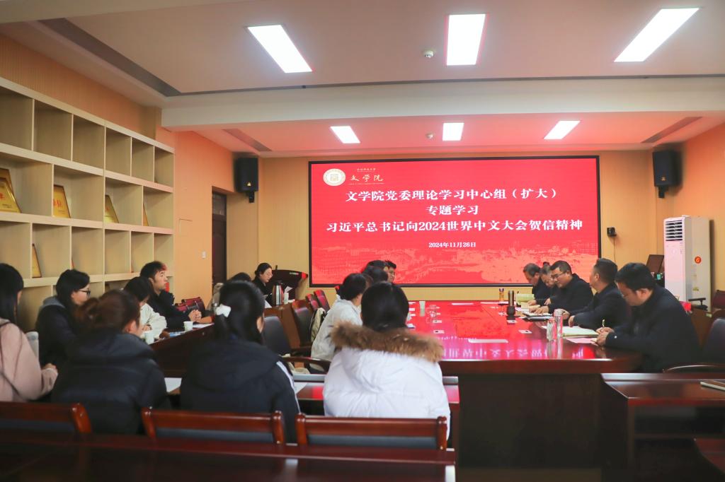 太阳成集团tyc151cc党委理论学习中心组(扩大)专题学习习近平总书记向2024世界中文大会贺信精神