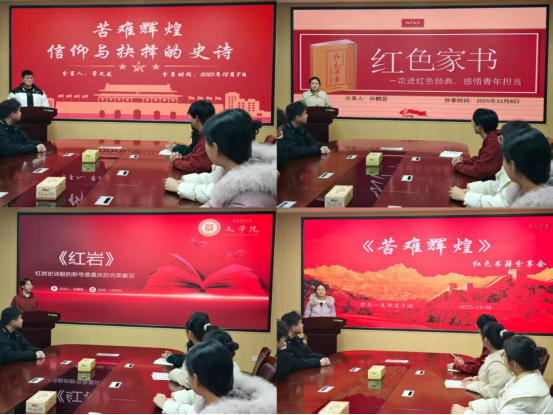 在交流分享环节,与会党员结合自身阅读体会,围绕《红岩》《红色家书》《苦难辉煌》等经典著作展开深入交流。大家立足历史与现实交汇点,畅谈书中展现的革命者精神品格对当代青年的启示,深刻感悟信仰之力、理想之光。现场气氛热烈,掌声阵阵,引起了广泛共鸣。与会党员纷纷表示,通过此次分享交流,进一步深化了对党的奋斗历史与初心使命的认识,增强了作为新时代青年党员的责任感与使命感,在今后的学习生活中将不断从红色基因中汲取前进动力。