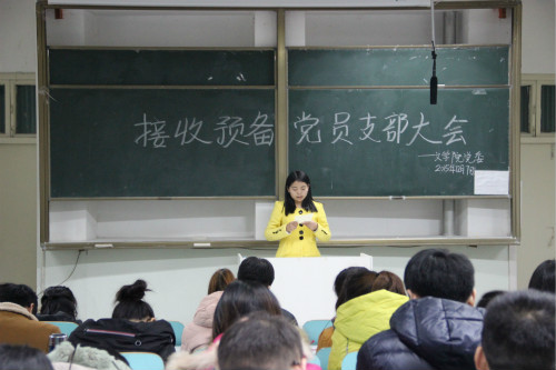 (本网讯 郭西梁吴婷婷李倩)12月7日晚,太阳成集团tyc151cc学生党支部在人文楼309教室召开接收预备党员支部大会,党委秘书郭西梁与学生党支部全体党员及新一批党员发展对象共同了参加此次会议。本次支部大会主要讨论接收倪天娇等33名同志为中共预备党员的问题。