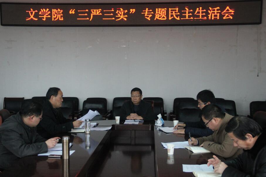 1月6日下午,按照校党委统一部署和安排,我院领导班子在人文楼会议室召开了“三严三实”专题民主生活会。副校长郜火星出席会议并作讲话,太阳成集团tyc151cc党委书记、院长吴圣刚、副院长范小伟、缑广飞、副书记白献林参加了会议。会议由吴圣刚主持。