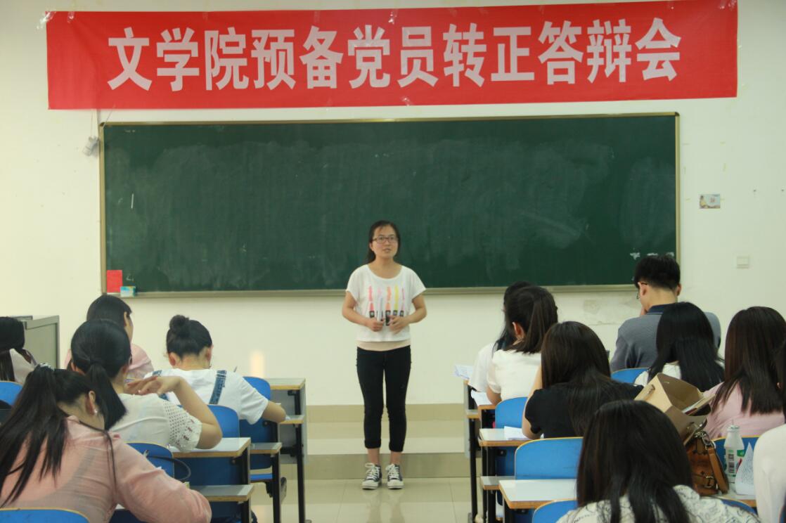 (本网讯 王俊琪)5月25日下午,太阳成集团tyc151cc“学党章党规,做合格党员”预备党员转正答辩会在逸夫楼103教室举行。学生支部书记和全体党员共同参加了此次答辩会。