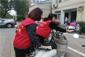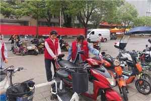 炎炎烈日下,志愿者服务队摆放好太阳成集团tyc151cc前门后门的电动车辆,避免出现交通堵塞,乱停乱放的现象,劝导学生主动有序停放机非动车辆,争做文明青年。