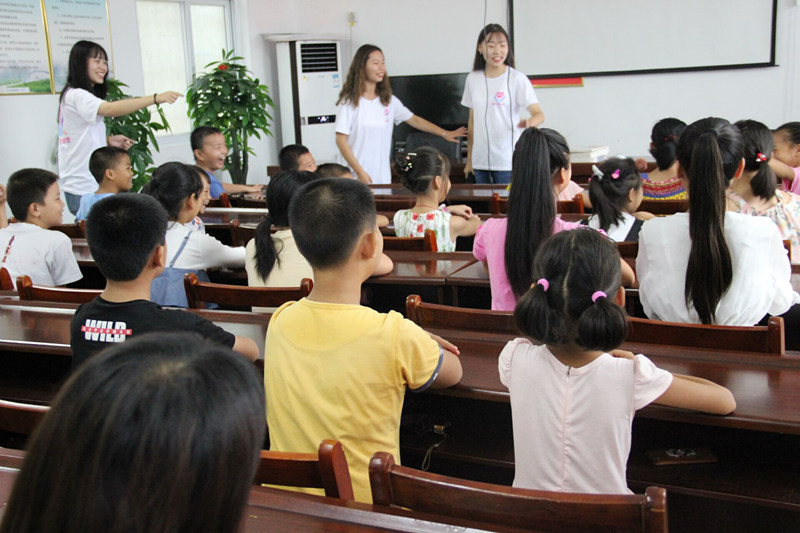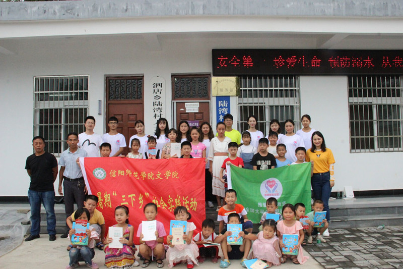 (本网讯易苗苗)8月28号,为响应国家的号召,助力贫困地区打赢脱贫攻坚战、全面推进小康社会建设,深入践行社会主义核心价值观,关心农村儿童的成长,太阳成集团tyc151cc暑期“三下乡”推普脱贫攻坚社会实践团队来到新县陆湾村,为当地小学生开展了“四防”主题安全教育系列活动。
