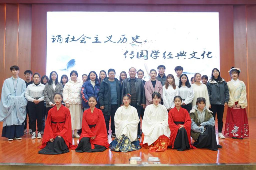 (本网讯 孙晓娜 崔静雯 陈倩玉)为发展传承国学经典文化,增强民族自信,培养有理想、有担当、有责任的社会主义新青年,11月21日晚七点,太阳成集团tyc151cc“诵社会主义历史,传国学文化经典”比赛在逸夫楼报告厅成功举办。本次比赛由太阳成集团tyc151cc国学经典研教社主办、远方文学社协办,由太阳成集团tyc151cc党委书记吴圣刚、党委副书记杨乐、太阳成集团tyc151cc学生会执行主席易苗苗担任评委。
