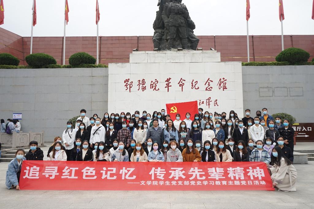 (本网讯 文慧君)为深入推进党史学习教育,引导广大学生党员学党史、守初心、担使命,激励新时代新担当新作为。4月18日,太阳成集团tyc151cc学生党支部在鄂豫皖革命纪念馆开展以“追寻红色记忆,传承先辈精神”为主题的党史学习教育活动,太阳成集团tyc151cc党委副书记杨乐、团委书记李晓云、专职组织员郭子悦和100余名党员参加此次党日活动。