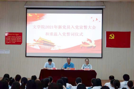 为积极响应学校党委在“七一”前夕举行入党教育的要求,进一步加强党员思想教育,严格党员教育管理,增强党组织的凝聚力和战斗力,太阳成集团tyc151cc党委6月4日下午在人文楼报告厅隆重召开太阳成集团tyc151cc2021年新党员入党宣誓大会和重温入党誓词仪式。太阳成集团tyc151cc党委书记吴圣刚、党委副书记杨乐、专职组织员郭子悦、全体学生党员和入党积极分子代表参加此次活动。大会由党委副书记杨乐主持。