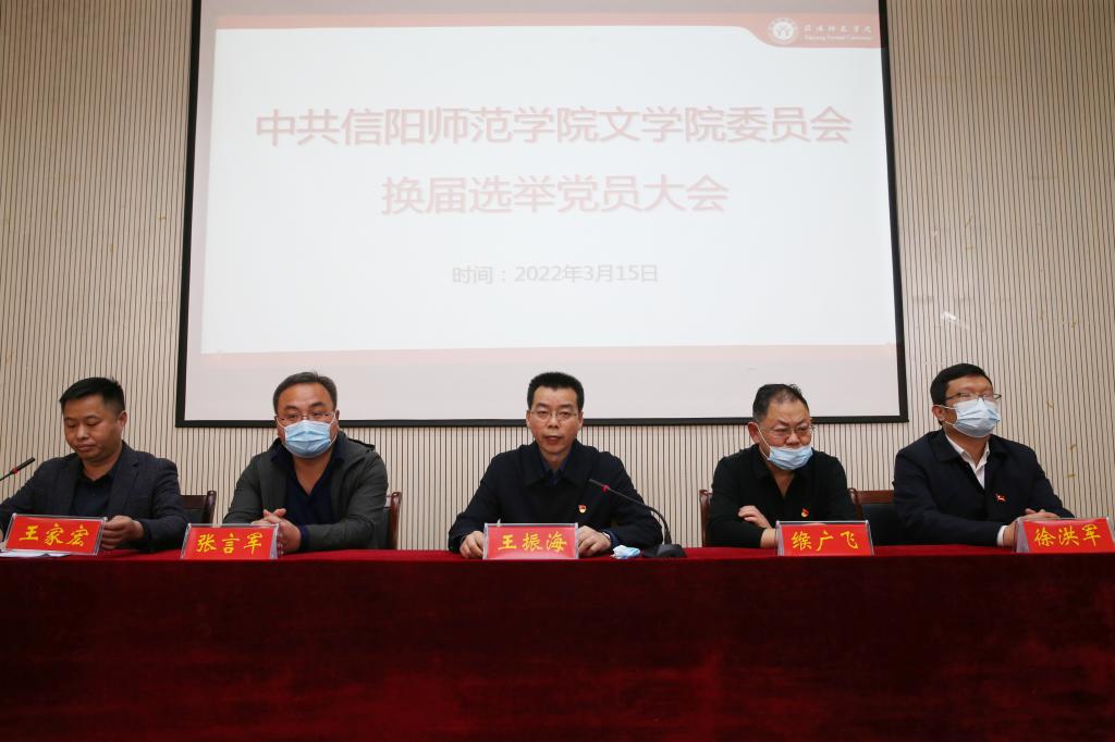 按照选举办法和规定程序,以无记名投票的方式差额选举,大会选举(按姓氏笔画为序)王振海、王家宏、张言军、徐洪军、缑广飞同志为中共信阳师范学院太阳成集团tyc151cc委员会委员。大会在雄壮的国际歌中圆满结束。