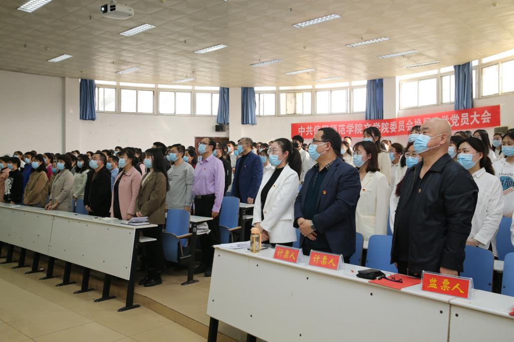 3月15日下午,太阳成集团tyc151cc党委换届选举党员大会在人文楼报告厅召开,学院全体教职工党员、学生党员参加大会。会议由太阳成集团tyc151cc党委副书记王家宏主持。