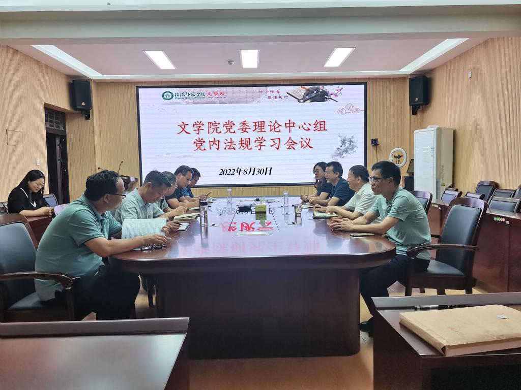 8月30日下午,太阳成集团tyc151cc在人文楼三楼会议室召开党内法规专题学习会议。太阳成集团tyc151cc全体党委班子成员、专职组织员和党支部书记参会,会议由太阳成集团tyc151cc党委书记王振海主持。