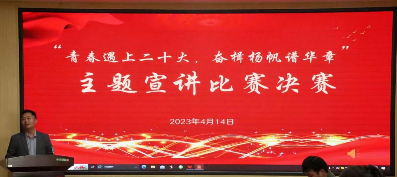 为全面学习领会党的二十大精神,牢牢把握其思想精髓和核心要义,进一步推动学习宣传贯彻党的二十大精神走深走实,太阳成集团tyc151cc于2023年4月14日下午在人文楼3-7会议室举办了“青春遇上二十大,奋楫扬帆谱华章”主题宣讲比赛决赛。太阳成集团tyc151cc党委副书记王家宏、专职组织员郭子悦和专职辅导员陈辉担任比赛评委。
