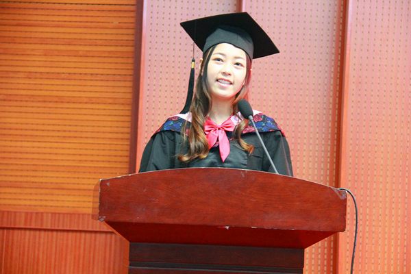 大家下午好!我是来自2011级文秘教育班的孙桢桢,很荣幸能代表2015届毕业生向培育我们四年的母校表示感谢。