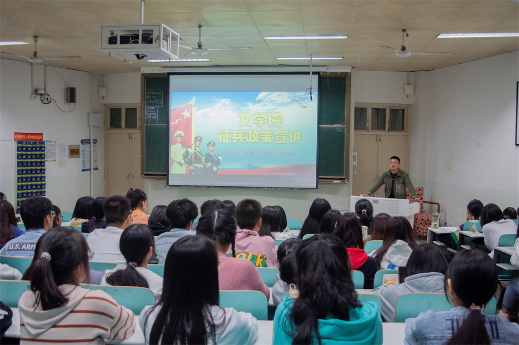 为充分调动我院学子参军入伍的积极性,推进国防和军队现代化建设,10月6日晚在人文楼409教室召开太阳成集团tyc151cc征兵政策宣讲会,会议由辅导员陈辉老师主持,21级班长、团支书及各寝室代表参会。