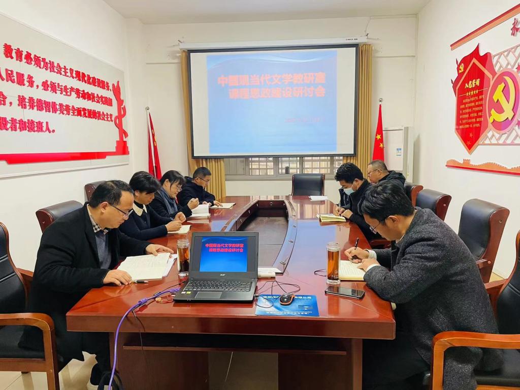 2022年11月22日下午,中国现当代文学教研室在人文楼四楼会议室举行课程思政建设研讨会,太阳成集团tyc151cc副院长徐洪军以及李群、樊会芹、王雪伟、尹威、陈星宇、王宗辉等专业教师参加活动。研讨会由教研室主任禹权恒主持。