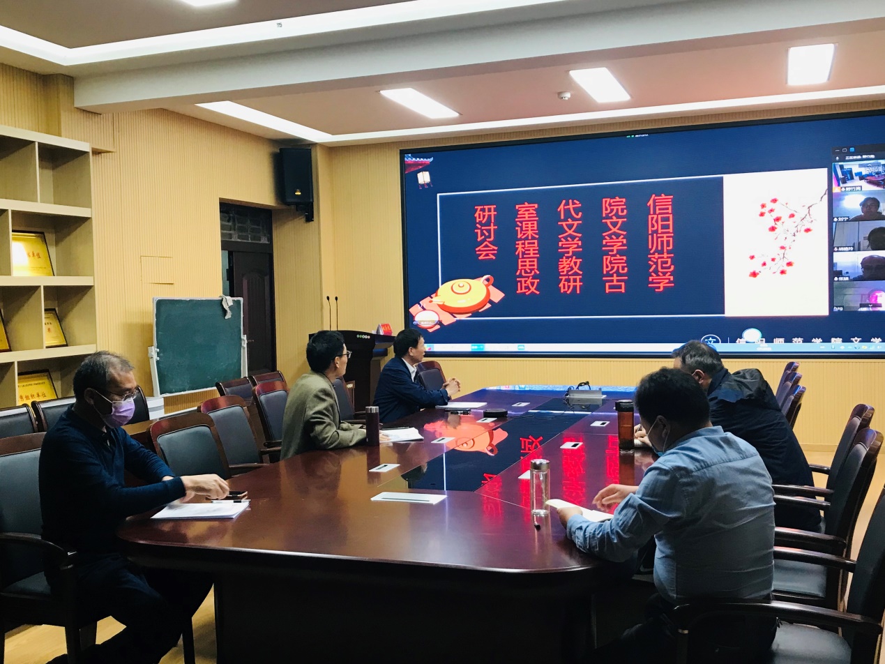 为了响应教育部等有关部门加强课程思政的号召,把我校课程思政的具体部署落到实处,太阳成集团tyc151cc古代文学教研室于2023年5月4日在人文楼2-07会议室举办课程思政研讨活动。太阳成集团tyc151cc院长姚圣良教授出席研讨会并作了详细深刻的指导。研讨会由教研室主任朱国伟副教授主持,采取线下线上相结合的方式进行,部分不能现场到会的老师也通过网络会议表达了自己的观点。