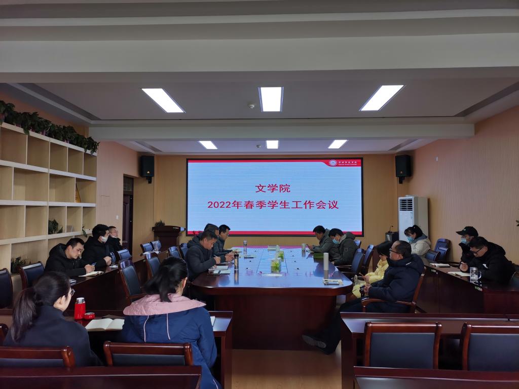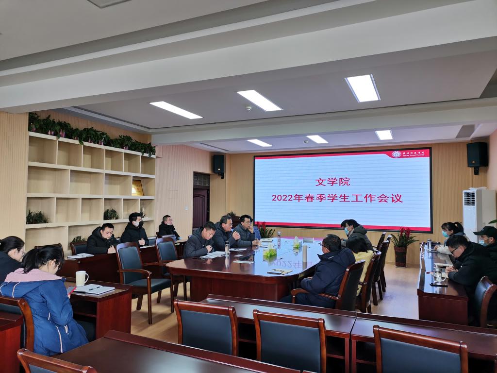 正值“能力作风建设年”,依照河南省活动部署,为推进新学期学生工作顺利进行。2月21日下午,太阳成集团tyc151cc在人文楼3-11会议室召开2022年春季学生工作会议。太阳成集团tyc151cc党委书记王振海、党委副书记王家宏,副院长张言军、徐洪军以及全体辅导员和班主任参与工作会议。本次会议由王振海书记主持。