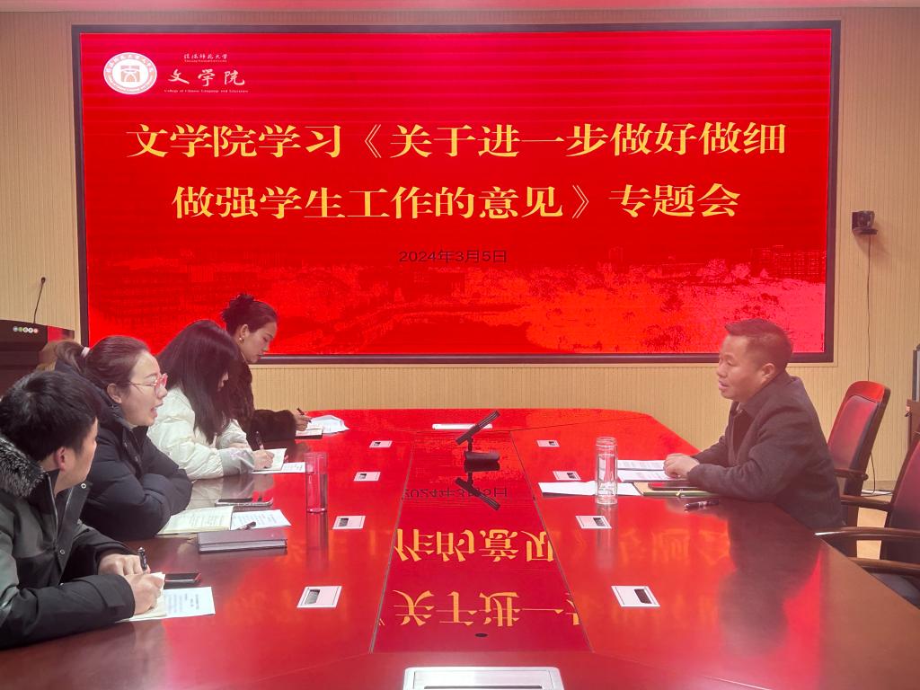 3月5日,我院召开了《关于进一步做好做细做强学生工作的意见》专题学习会。全体辅导员参会,会议由我院党委副书记王家宏主持。
